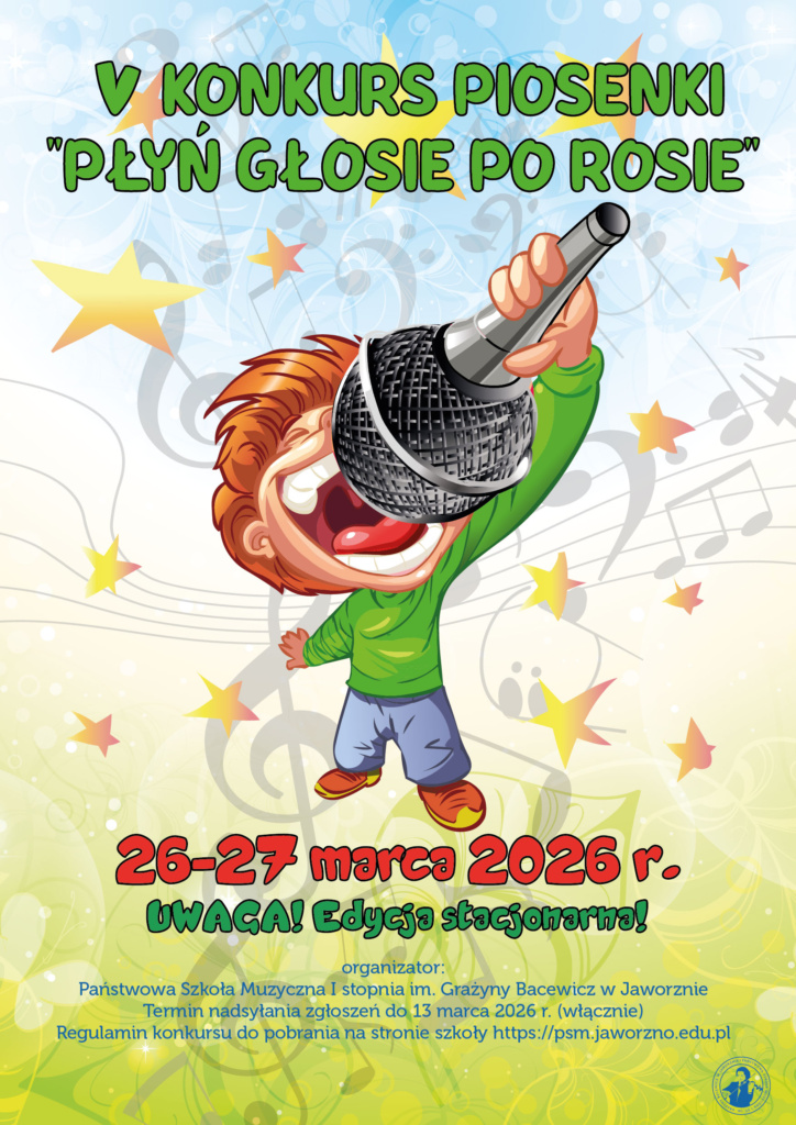 Państwowa Szkoła Muzyczna I stopnia im. Grażyny Bacewicz w Jaworznie organizuje konkurs piosenki wiosennej zatytułowany Płyń głosie po rosie.